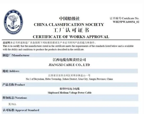 驶向新蓝海——江西电缆获中国船级社工厂认可