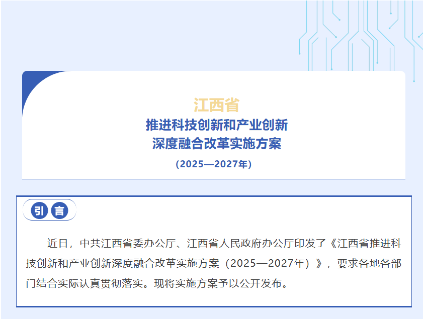 江西公布推进科技创新和产业创新深度融合改革实施方案(2025—2027年)