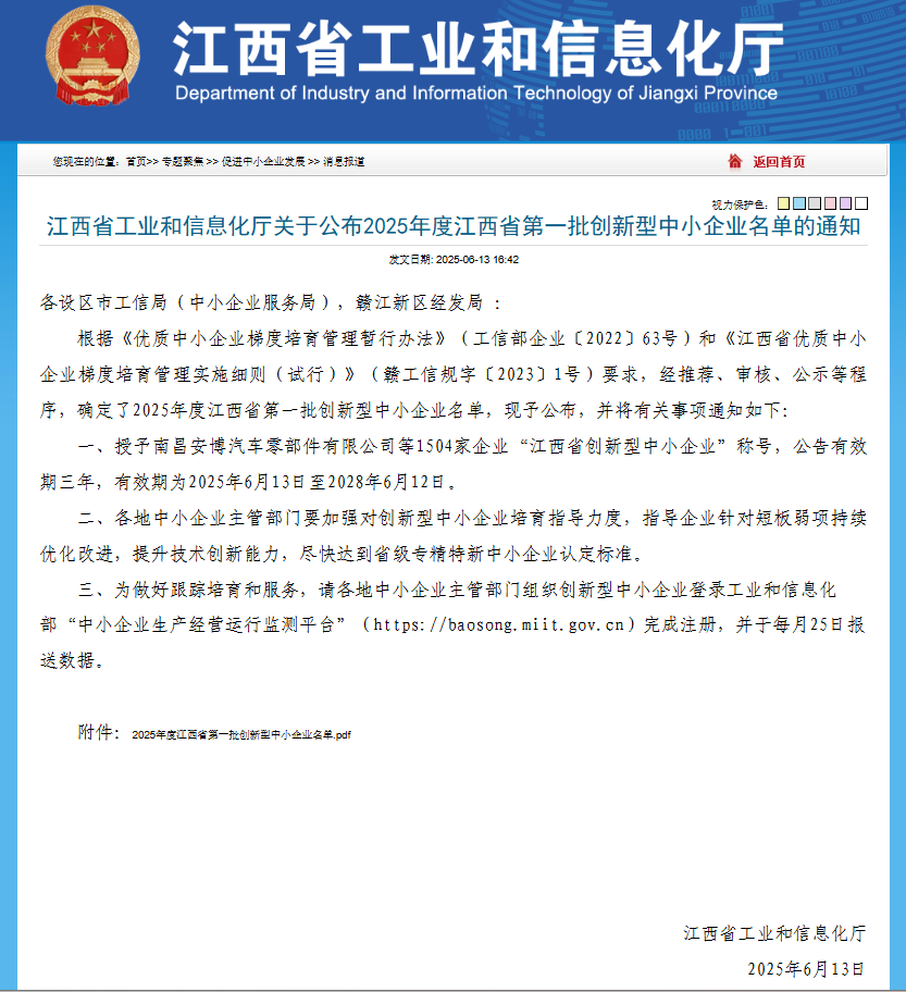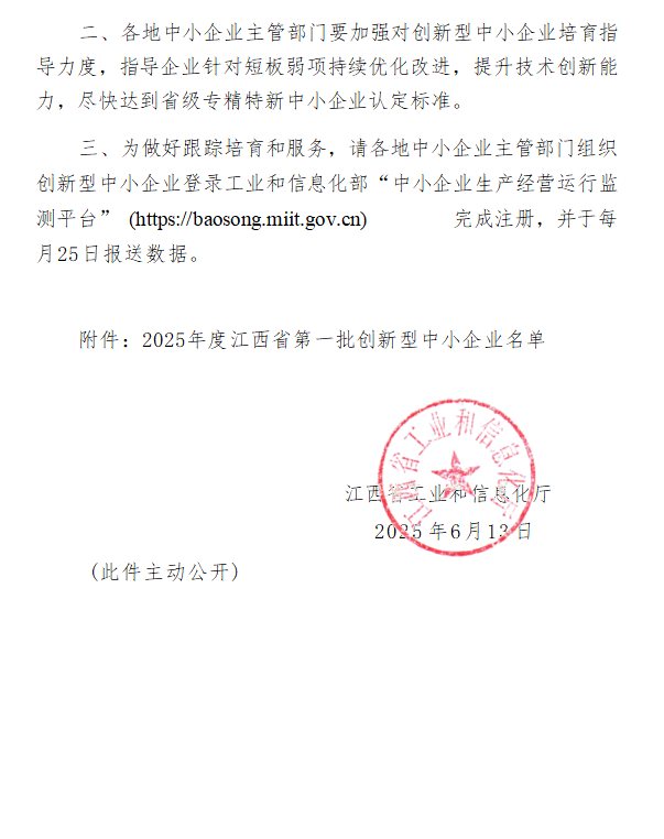 祝贺我会六家会员单位获评2025年度江西省第一批创新型中小企业!