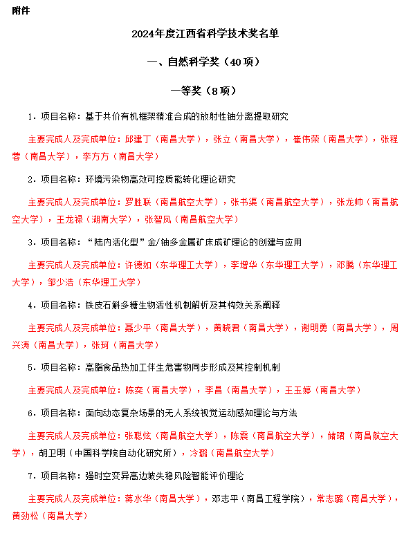 省长叶建春主持,省领导李红军、任珠峰、陈敏、罗小云、卢天锡出席,夏文勇宣读《江西省人民政府关于2024年度江西省科学技术奖励的决定》。在赣“两院”院士陈晔光、葛世荣、谢明勇等出席。
