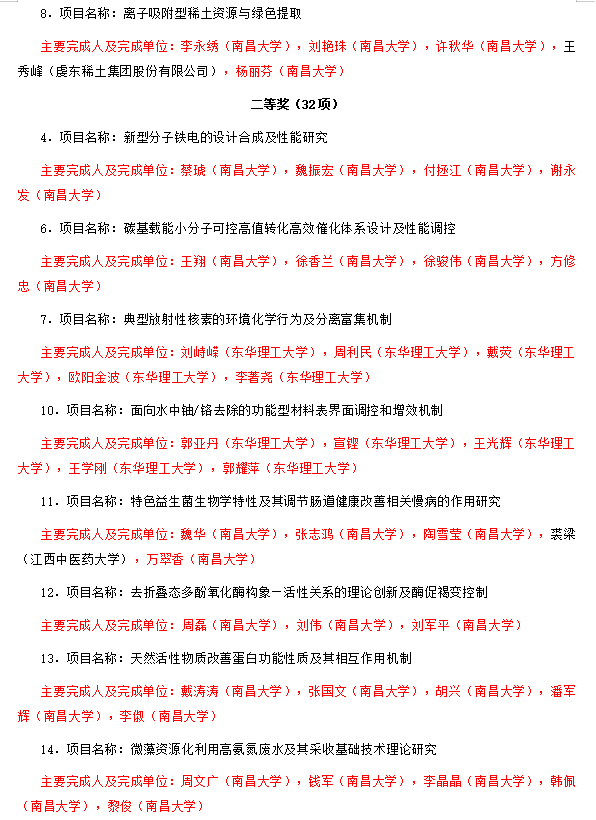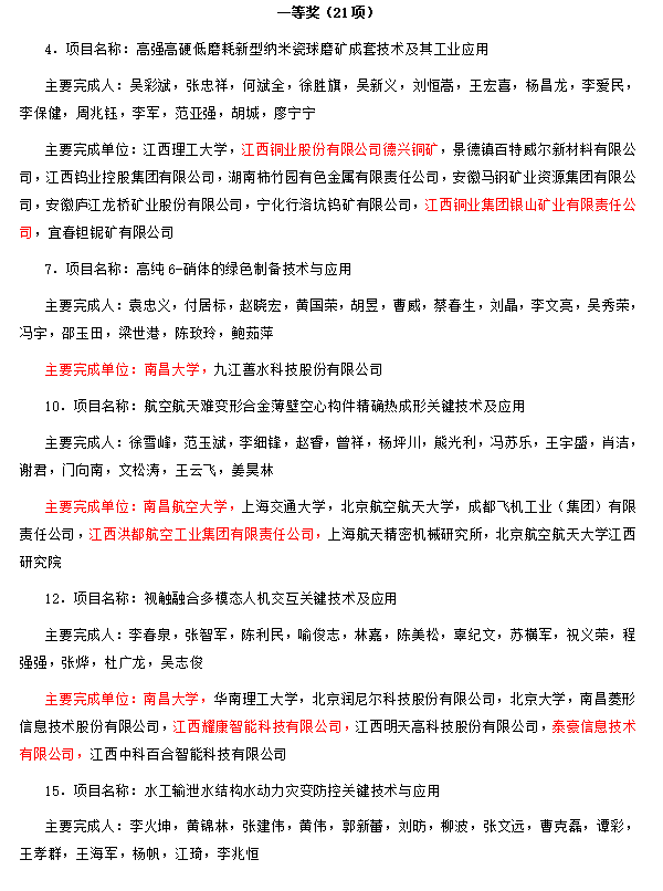 我会南昌大学、东华理工大学、南昌航空大学、江西铜业股份有限公司德兴铜矿、江西铜业集团银山矿业有限责任公司、江西洪都航空工业集团有限责任公司、江西耀康智能科技有限公司、泰豪信息技术有限公司、中国直升机设计研究所、江西新余国泰特种化工有限责任公司、江西恒大高新技术股份有限公司、泰豪科技股份有限公司等多家会员单位荣获奖励!祝贺!