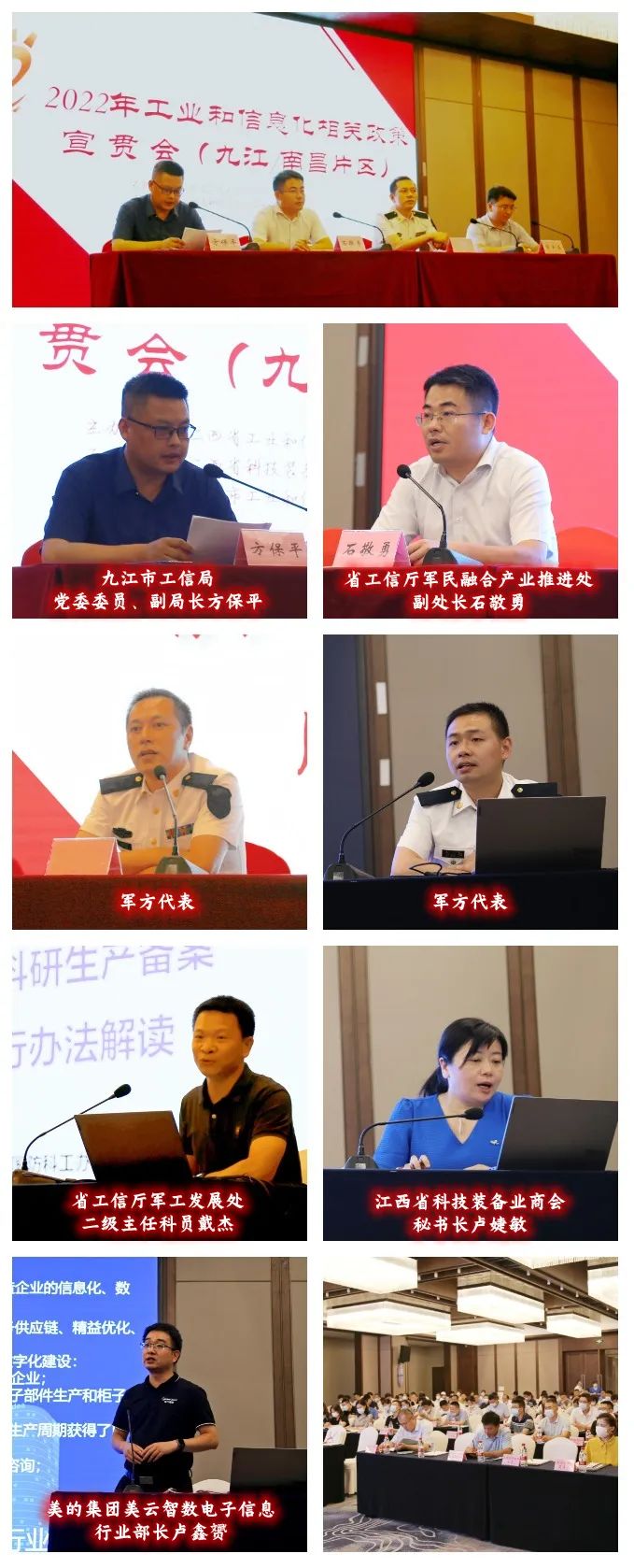 为更好帮助社会各界了解装备准入市场的最新政策,引导民口民营单位进入装备市场。6月24日,省工业和信息化厅主办,南昌市工信局、九江市工信局,江西科技装备业商会承办(九江/南昌片区)工业和信息化专项政策宣贯会在九江举行。南昌、九江地区民口、民营单位约160位代表参加了本次宣贯会,会议还邀请相关军方代表参加。
