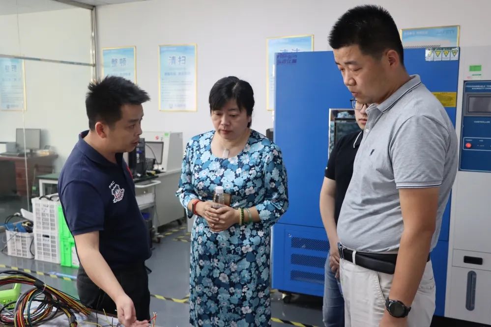 理事单位九江英智科技有限公司副总经理毛秀雄带领商会一行参观了生产车间和企业展厅,介绍了企业发展情况。