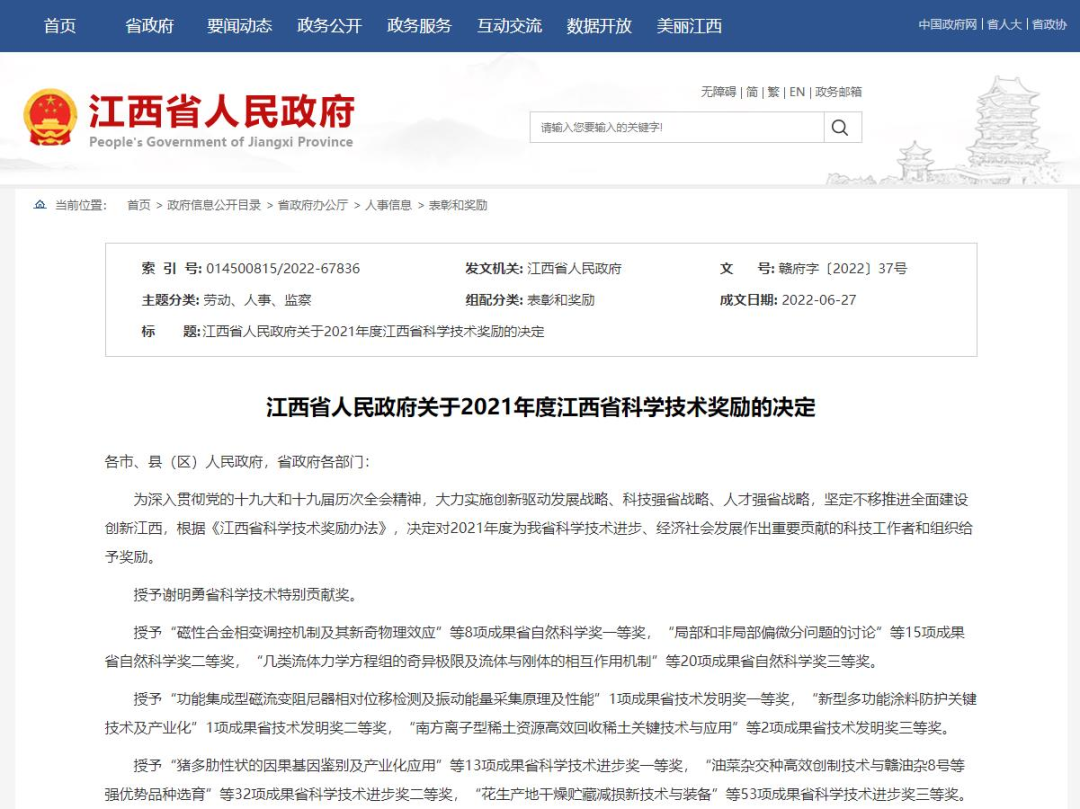 为深入贯彻党的十九大和十九届历次全会精神,大力实施创新驱动发展战略、科技强省战略、人才强省战略,坚定不移推进全面建设创新江西,根据《江西省科学技术奖励办法》,决定对2021年度为我省科学技术进步、经济社会发展作出重要贡献的科技工作者和组织给予奖励。