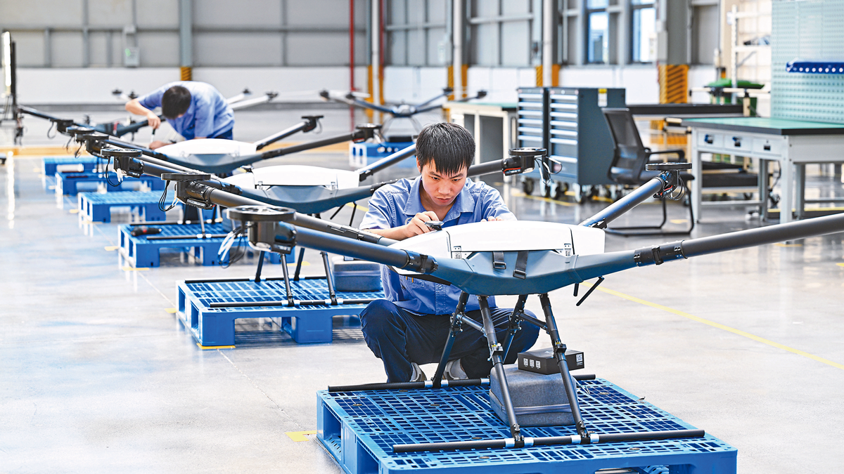 ▲9月17日,位于景德镇高新区的江西神州六合直升机有限责任公司装配车间,工人正在组装AR-E40多旋翼无人机。