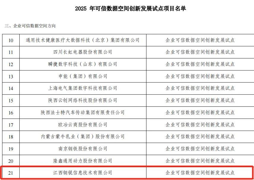 全省唯一!江西铜业企业可信数据空间项目入选全国试点
